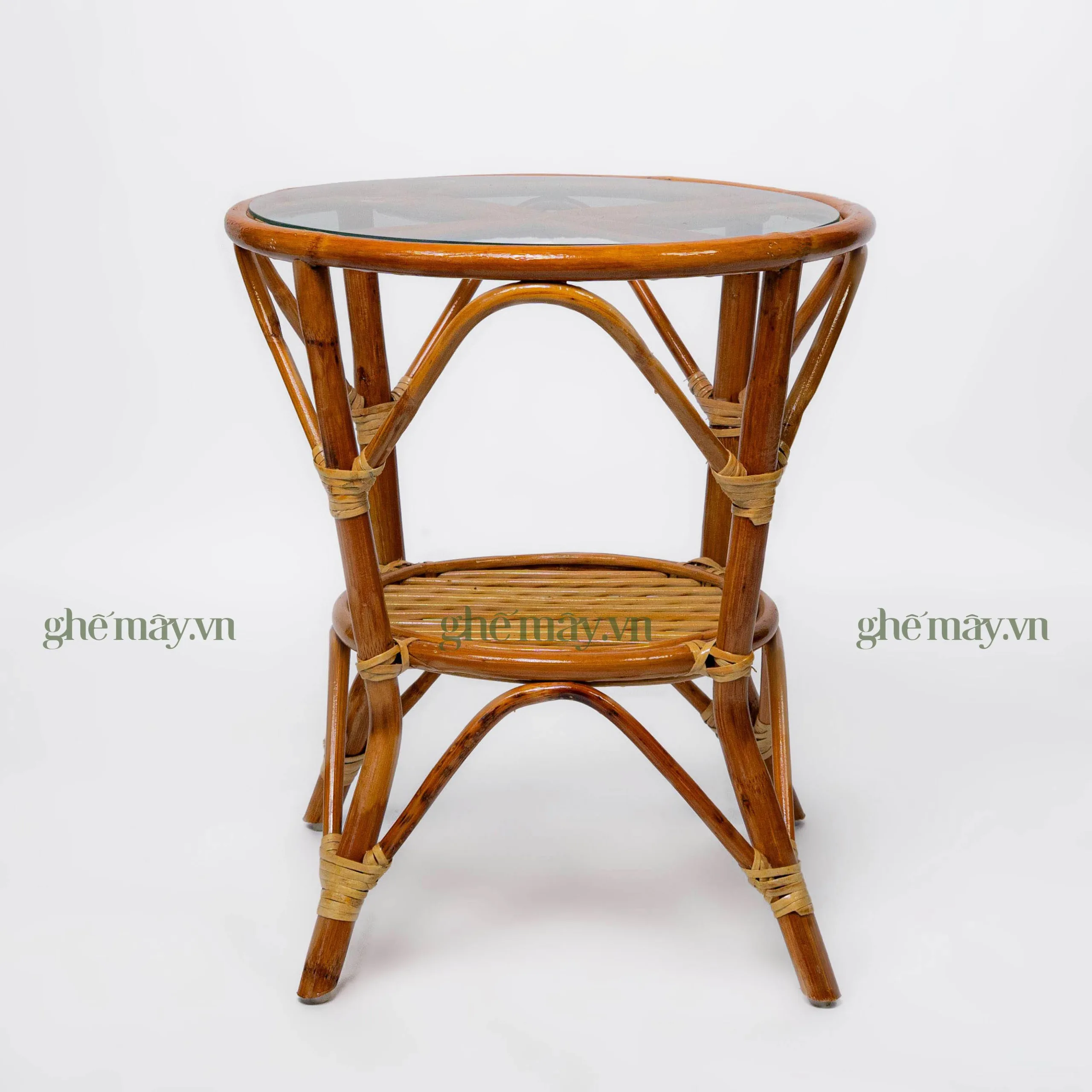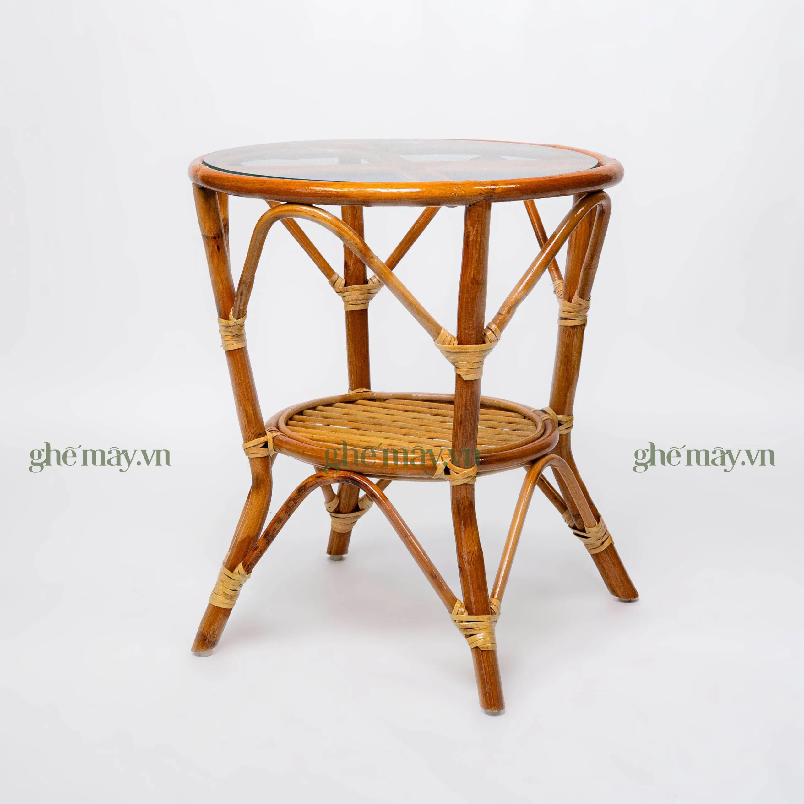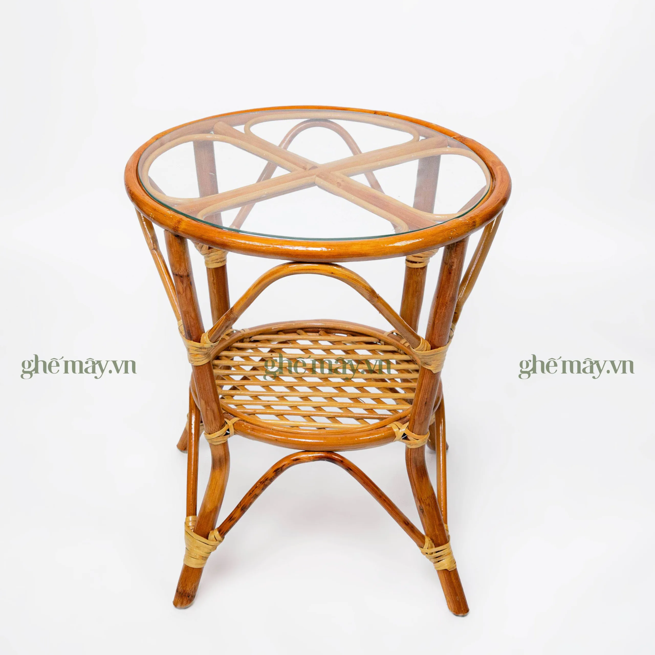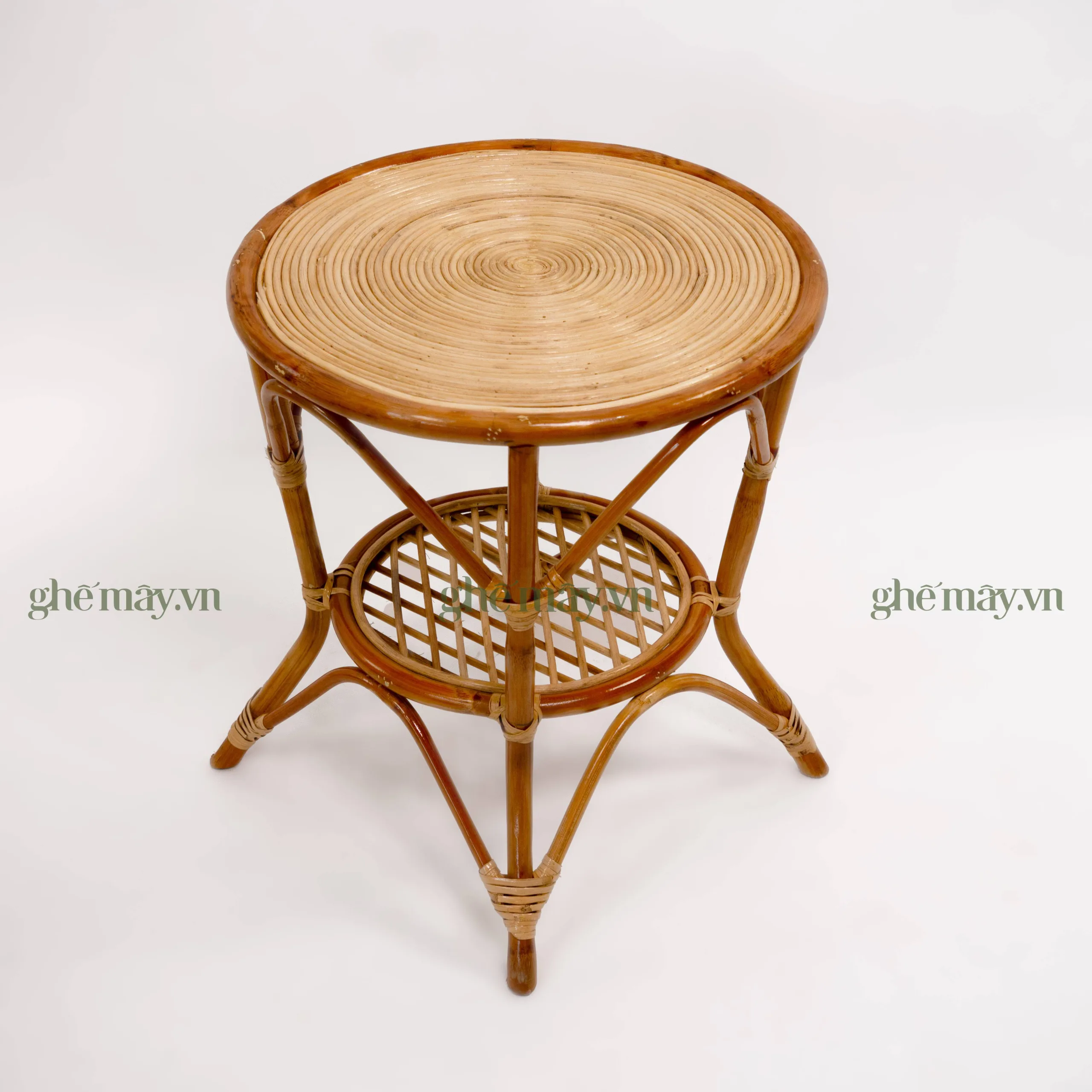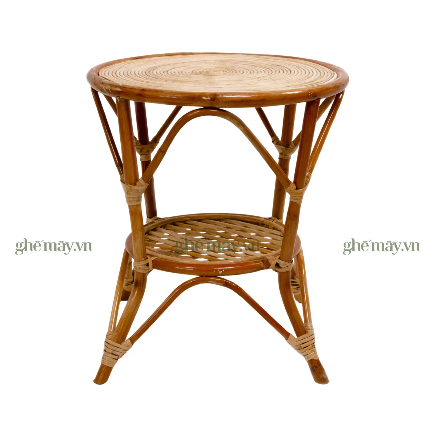 Với màu sắc hài hòa, bàn mây sò 2 tầng có thể ứng dụng trong nhiều không gian. Bàn có 2 tầng phân cách rõ ràng, mặt bàn là các đường mây nhỏ nhắn uốn tròn vòng quanh các trục, tạo hiệu ứng đẹp mắt, sinh động, tròn đầy.