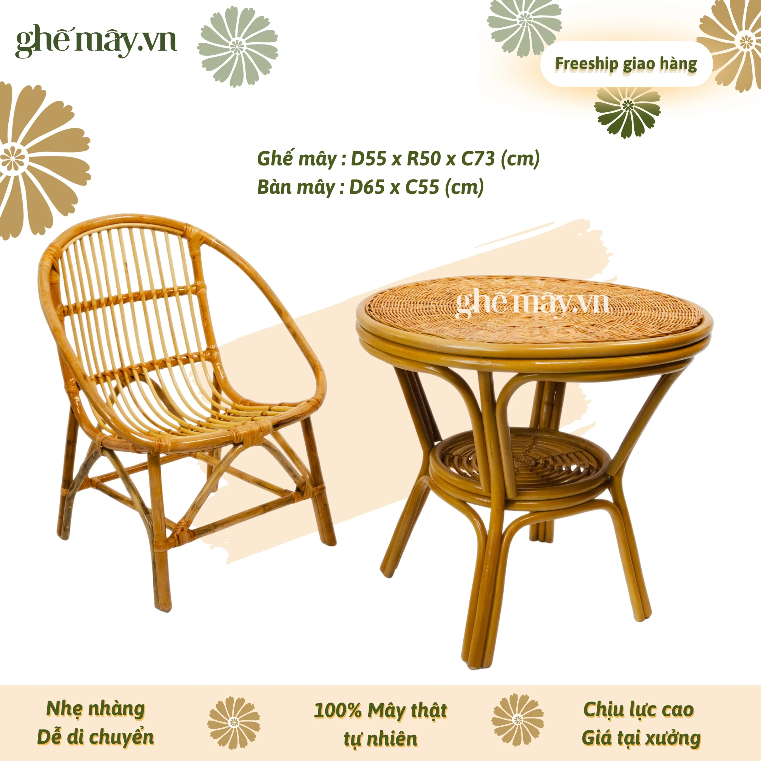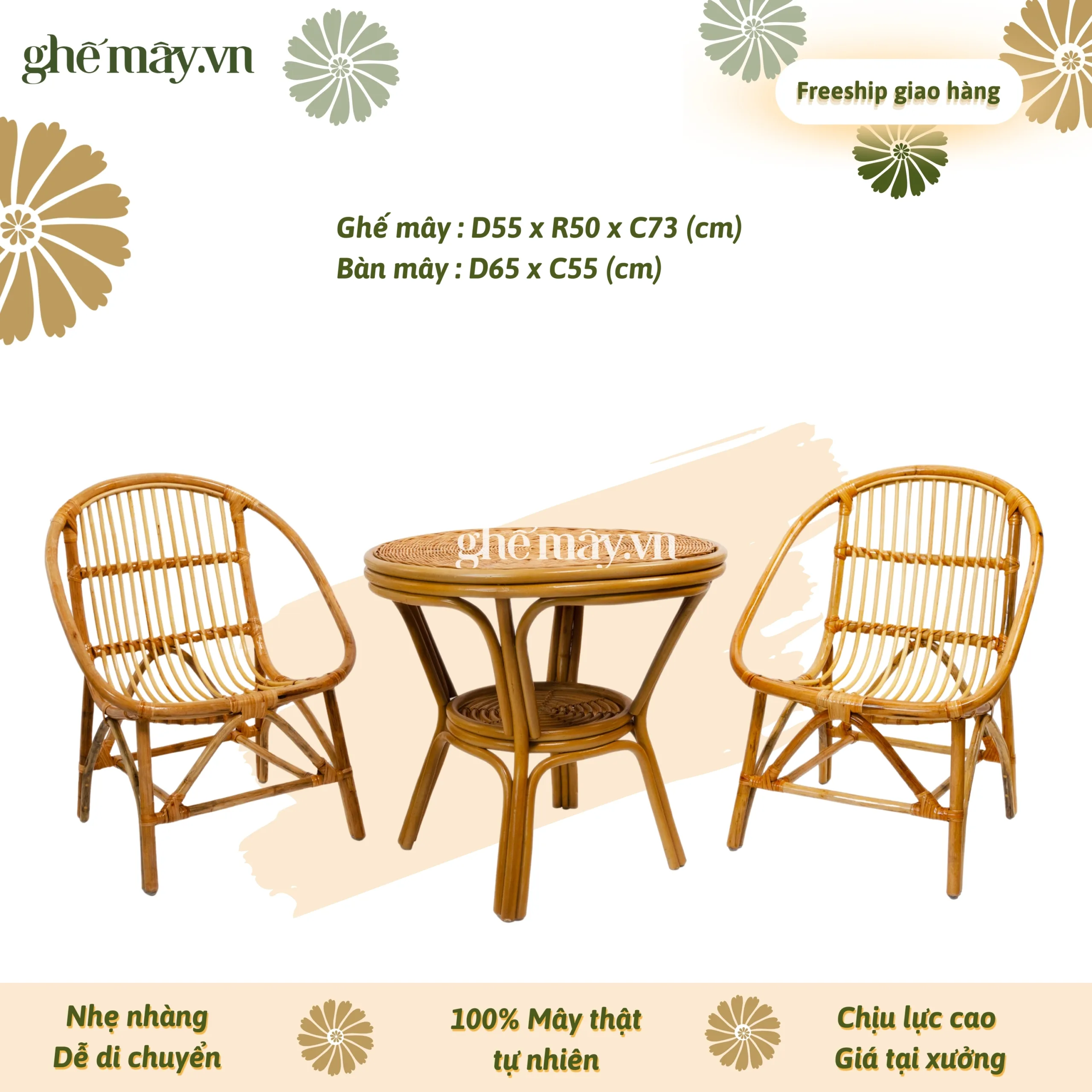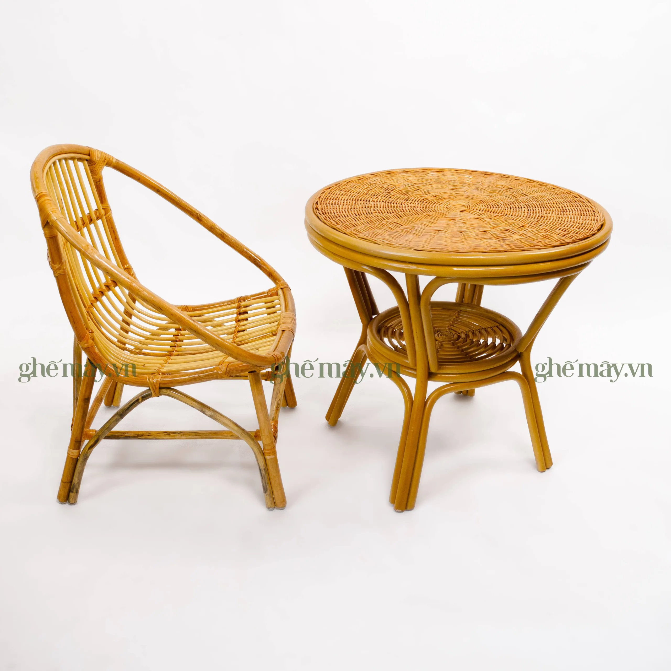 Bộ bàn ghế mây sò truyền thống (2 ghế mây)