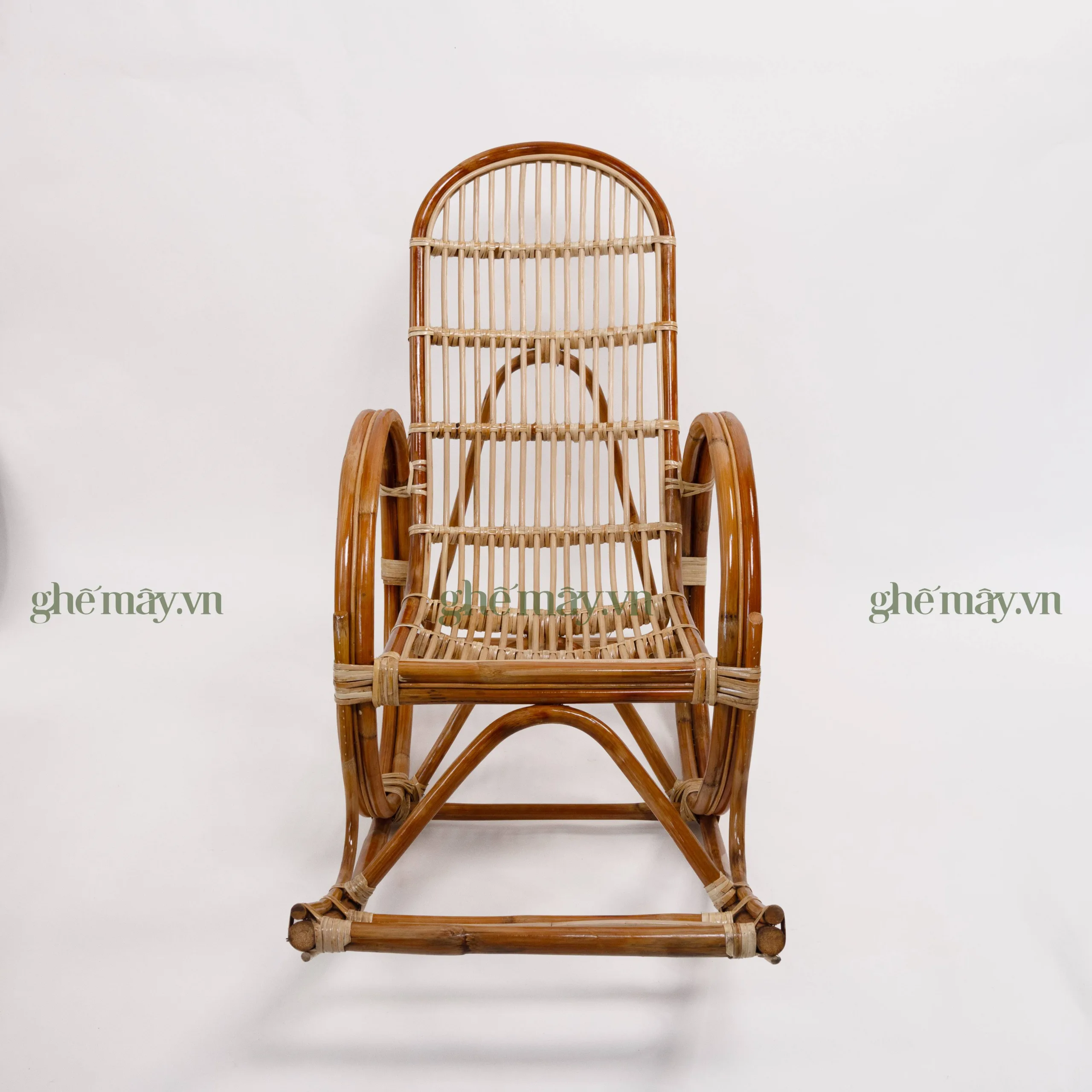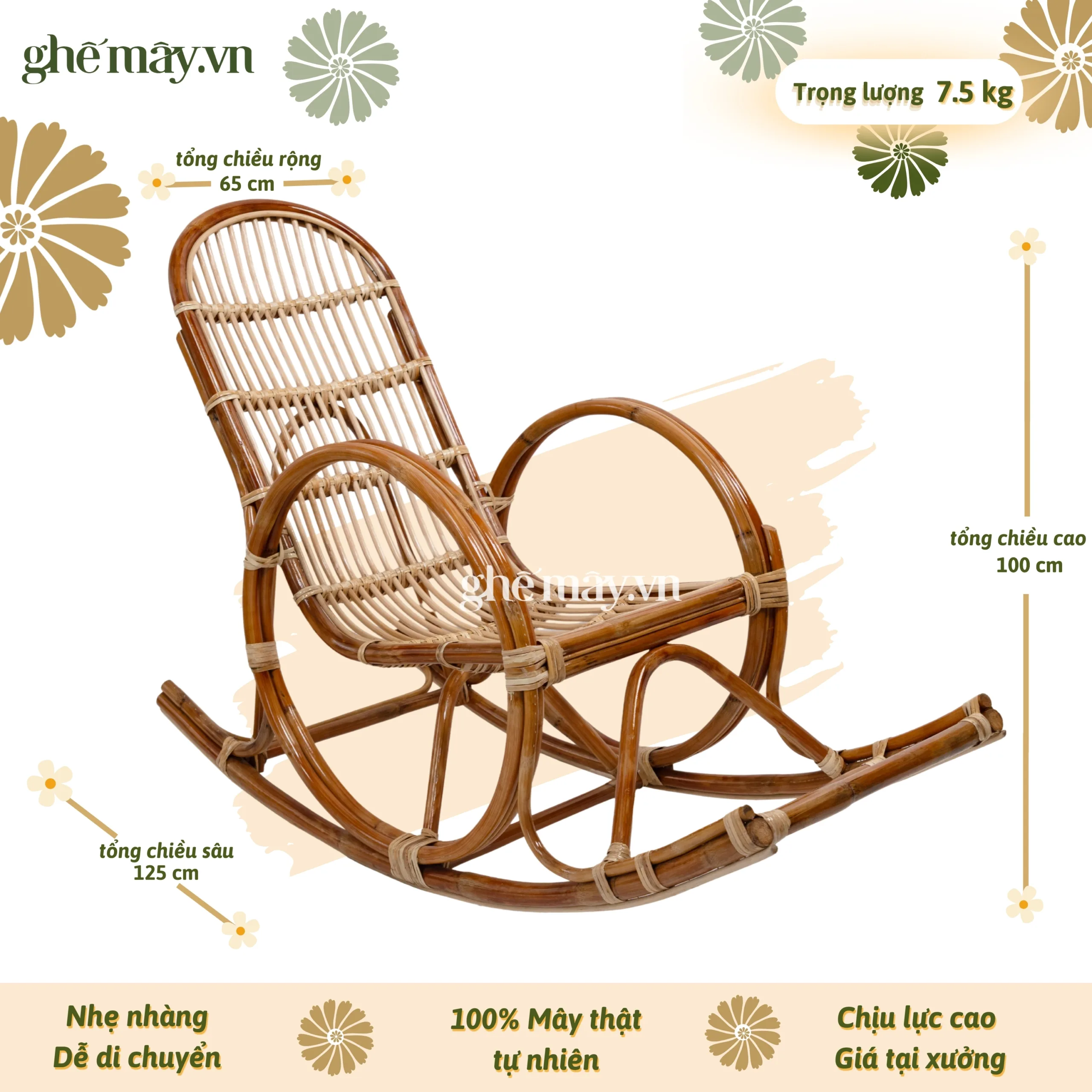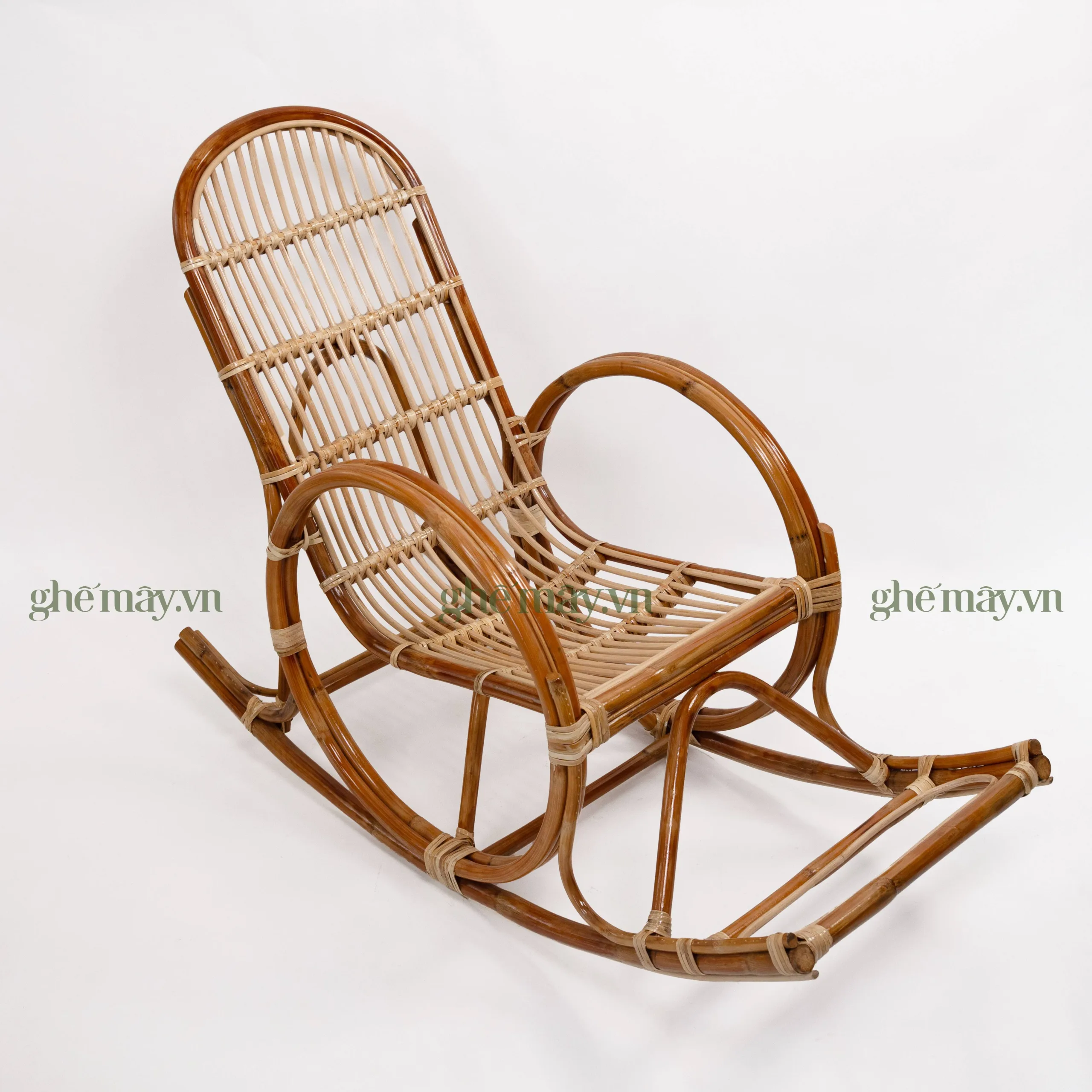 Ghế bập bênh bánh tròn là một trong số những chiếc ghế bán chạy nhất ở Ghế Mây. Chiếc ghế với thiết kế nổi bật: viền xung quanh thân ghế một đường mây cam óng mượt vô cùng đẹp mắt, họa tiết mây trắng chạy song song giữa lưng ghế tạo sự hài hòa.