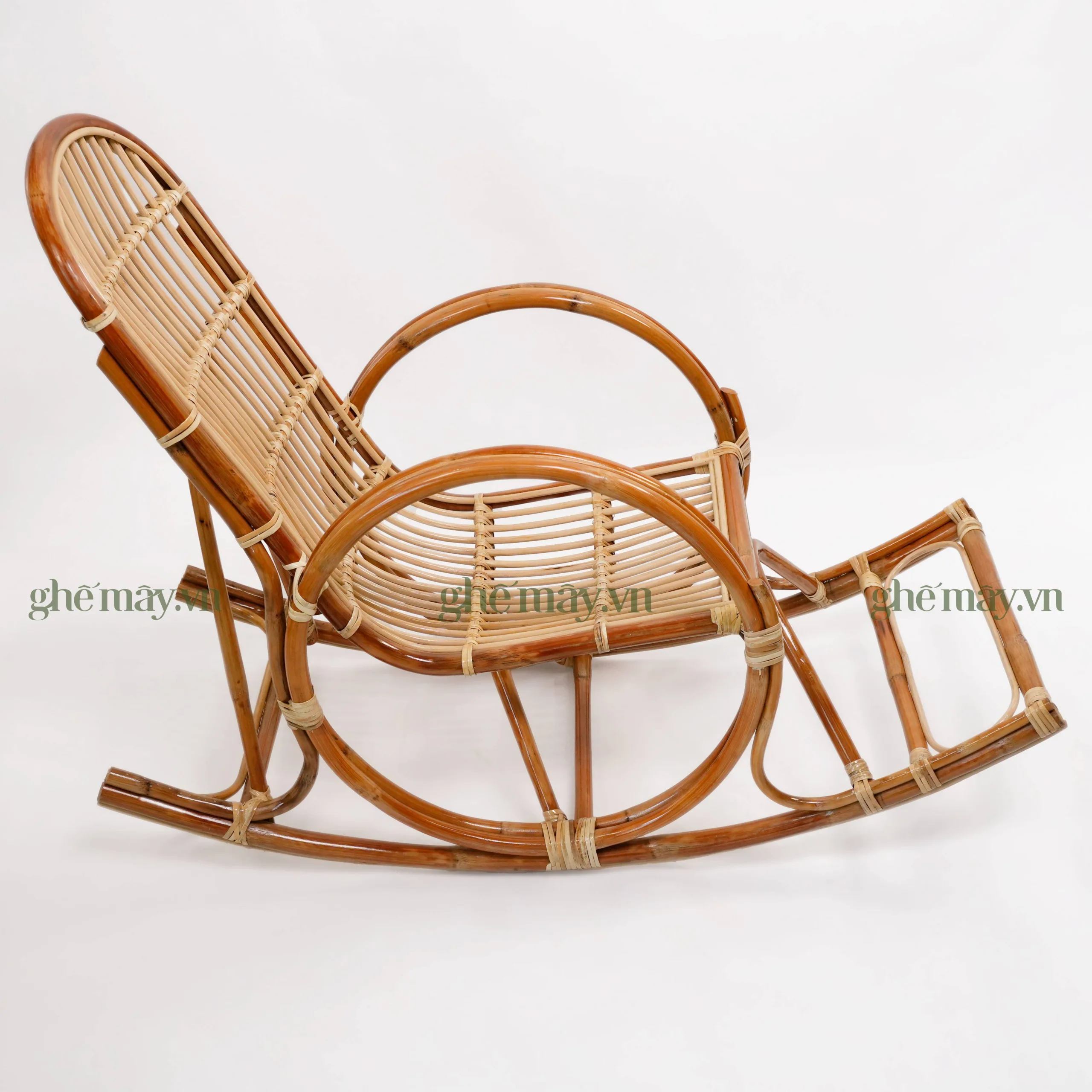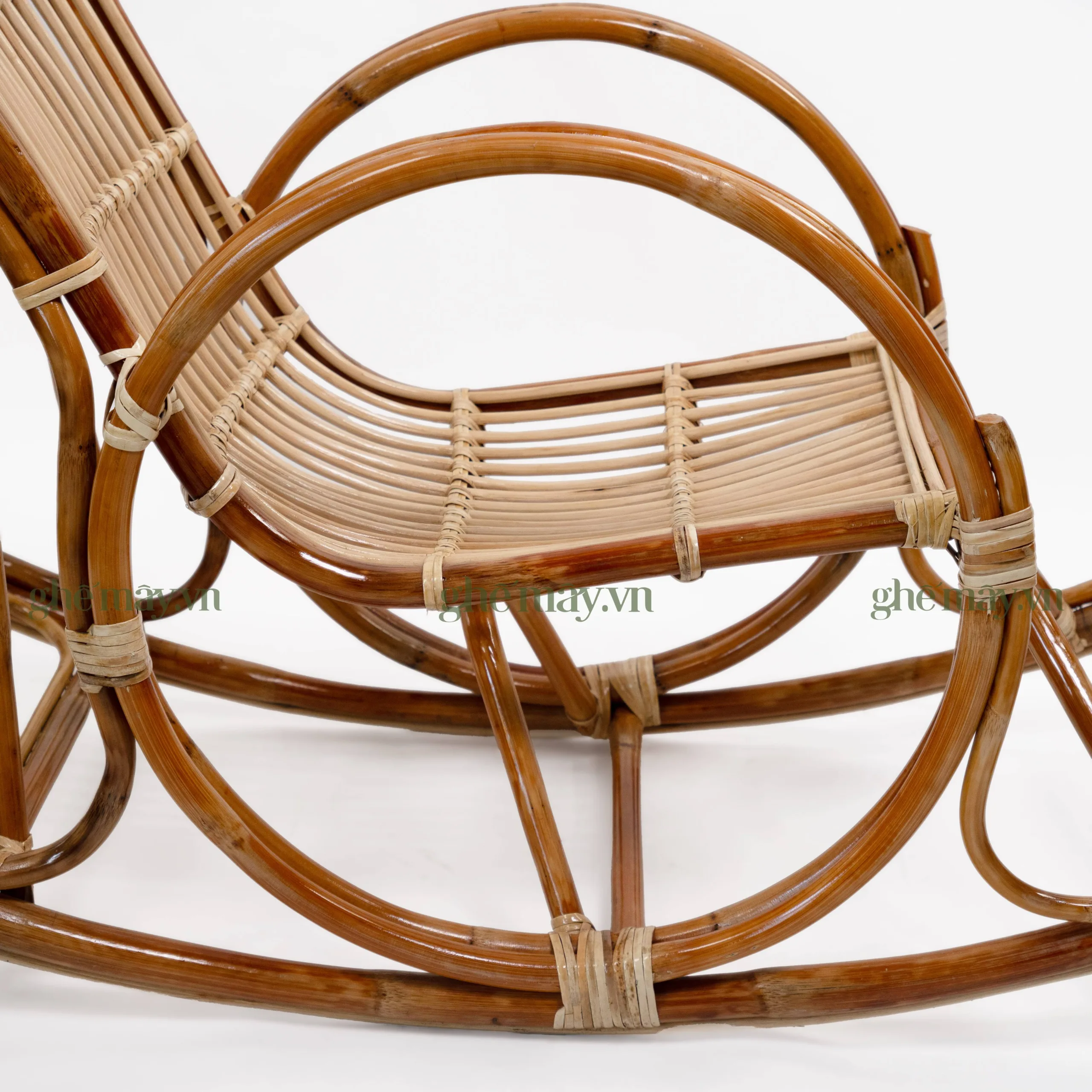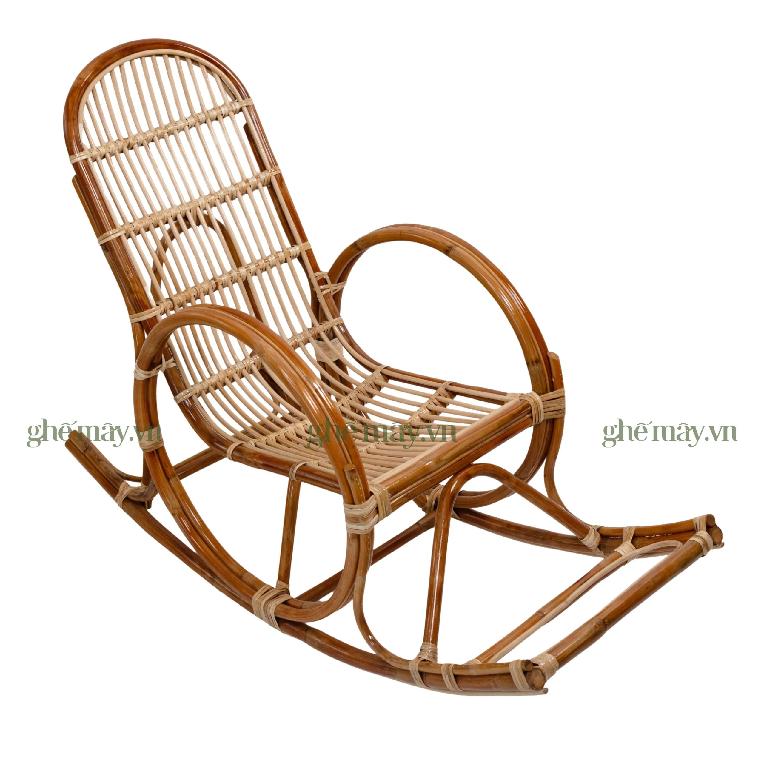 Ghế bập bênh bánh tròn là một trong số những chiếc ghế bán chạy nhất ở Ghế Mây. Chiếc ghế với thiết kế nổi bật: viền xung quanh thân ghế một đường mây cam óng mượt vô cùng đẹp mắt, họa tiết mây trắng chạy song song giữa lưng ghế tạo sự hài hòa.