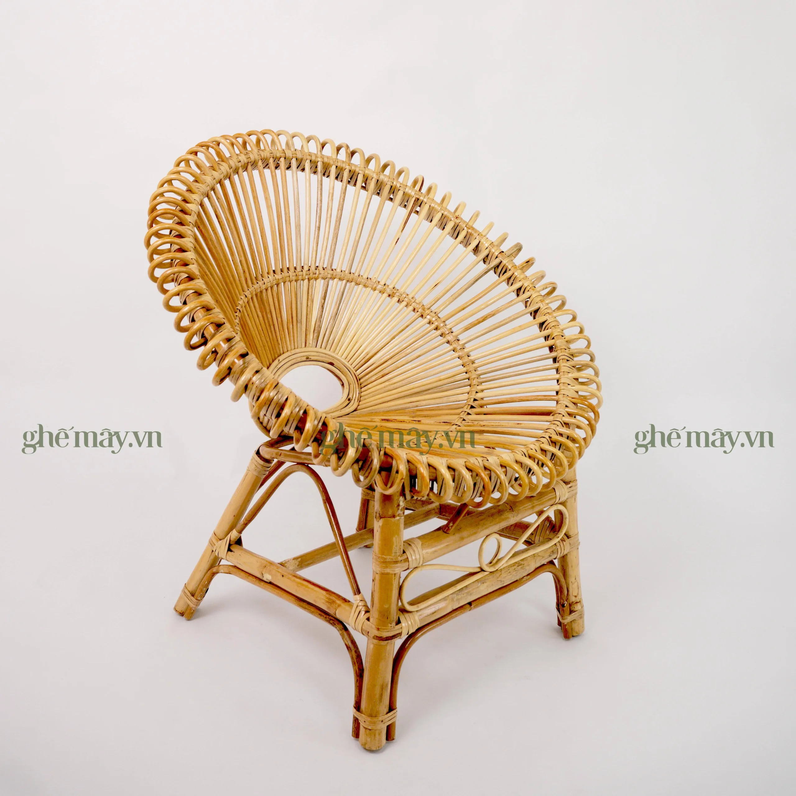 Ghế mây sen được thiết kế vô cùng đặc biệt, ghế hình tròn, tỏa đường mây từ trong rộng ra bên ngoài. Từng đường mây được gọt giũa kỹ càng, sơn mài nhẵn bóng, tỏa ra như một đóa sen lớn, xinh đẹp mà hài hòa. Phần cánh sen cũng được tạo đường cong, bo tròn nhẹ nhàng, không gây nguy hiểm hay trầy xước cho người sử dụng. Ghế có 4 chân to khỏe và chắc chắc. Ghế mây sen với độ hoàn thiện cao, chi tiết, ngồi ghế mây sen sẽ mang lại sự thoải mái, êm ái đặc biệt mà ít loại ghế nào có thể mang đến được.
