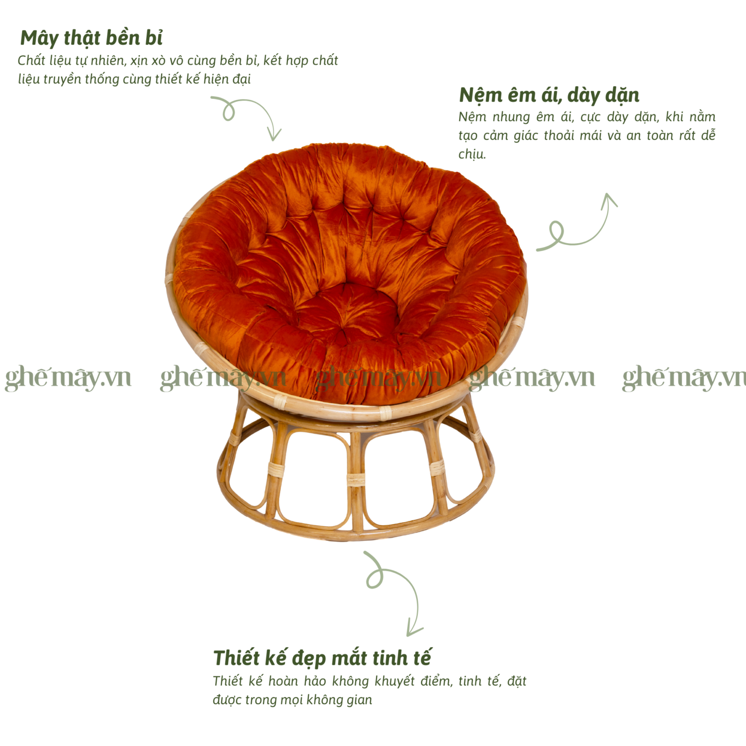 Ghế mây Papasan không chỉ mang đến sự thoải mái tuyệt đối mà còn là biểu tượng của lối sống nhẹ nhàng, thư thái. Dù được đặt trong phòng khách, phòng ngủ hay ngoài hiên, chiếc ghế vẫn toát lên nét sang trọng, tự nhiên và gần gũi.