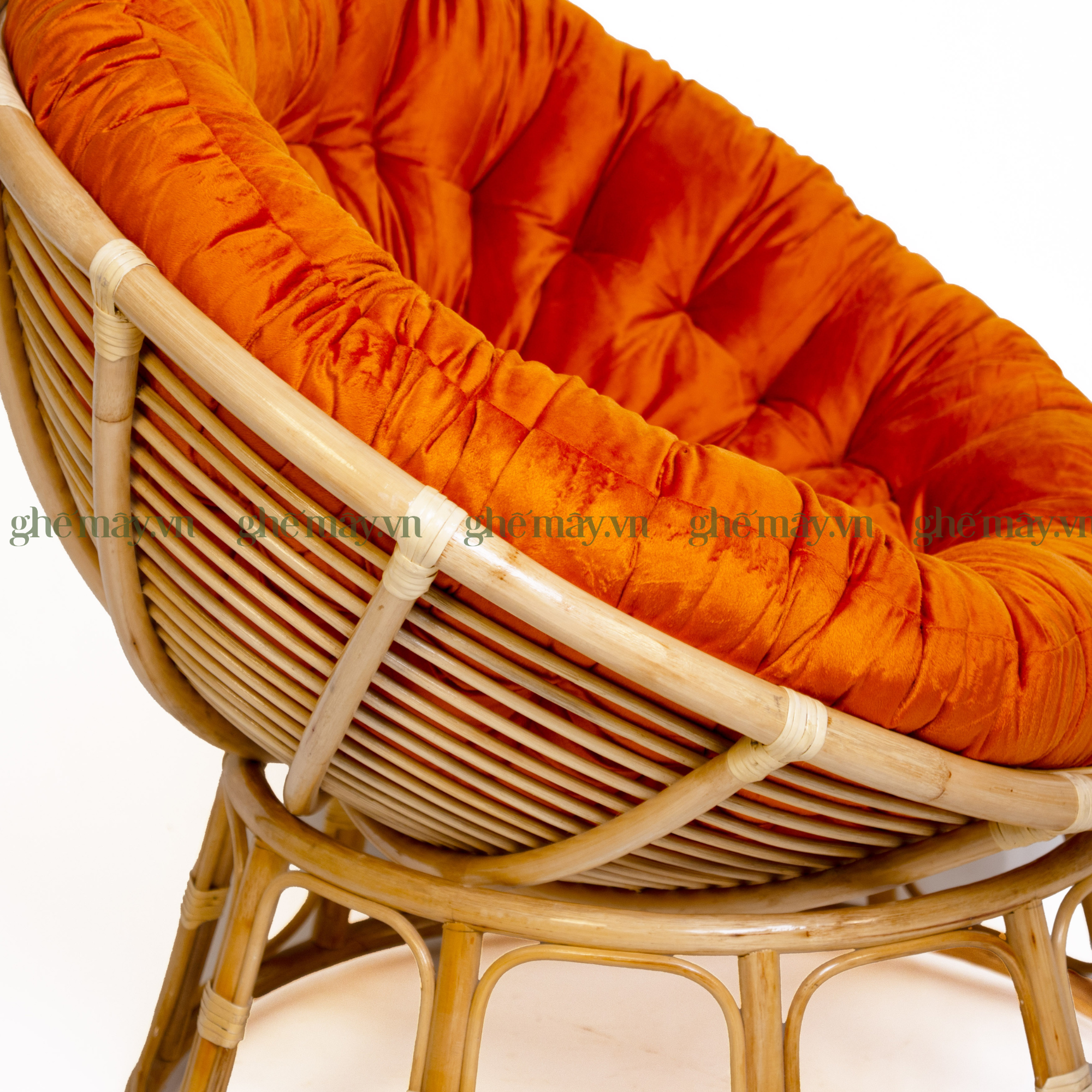 Một điểm đặc biệt của ghế mây Papasan là phần nệm ngồi êm ái và dày dặn, mang lại cảm giác siêu thư giãn mỗi khi bạn ngả lưng. Nệm được thiết kế rời, có thể dễ dàng thay đổi hoặc vệ sinh khi cần. Ngoài ra, khách hàng có thể lựa chọn màu sắc và chất liệu nệm theo sở thích cá nhân, với hai loại phổ biến là nhung mềm mịn và canvas bền đẹp. Điều này giúp bạn dễ dàng tùy chỉnh ghế Papasan để phù hợp với phong cách trang trí và tông màu của không gian sống.